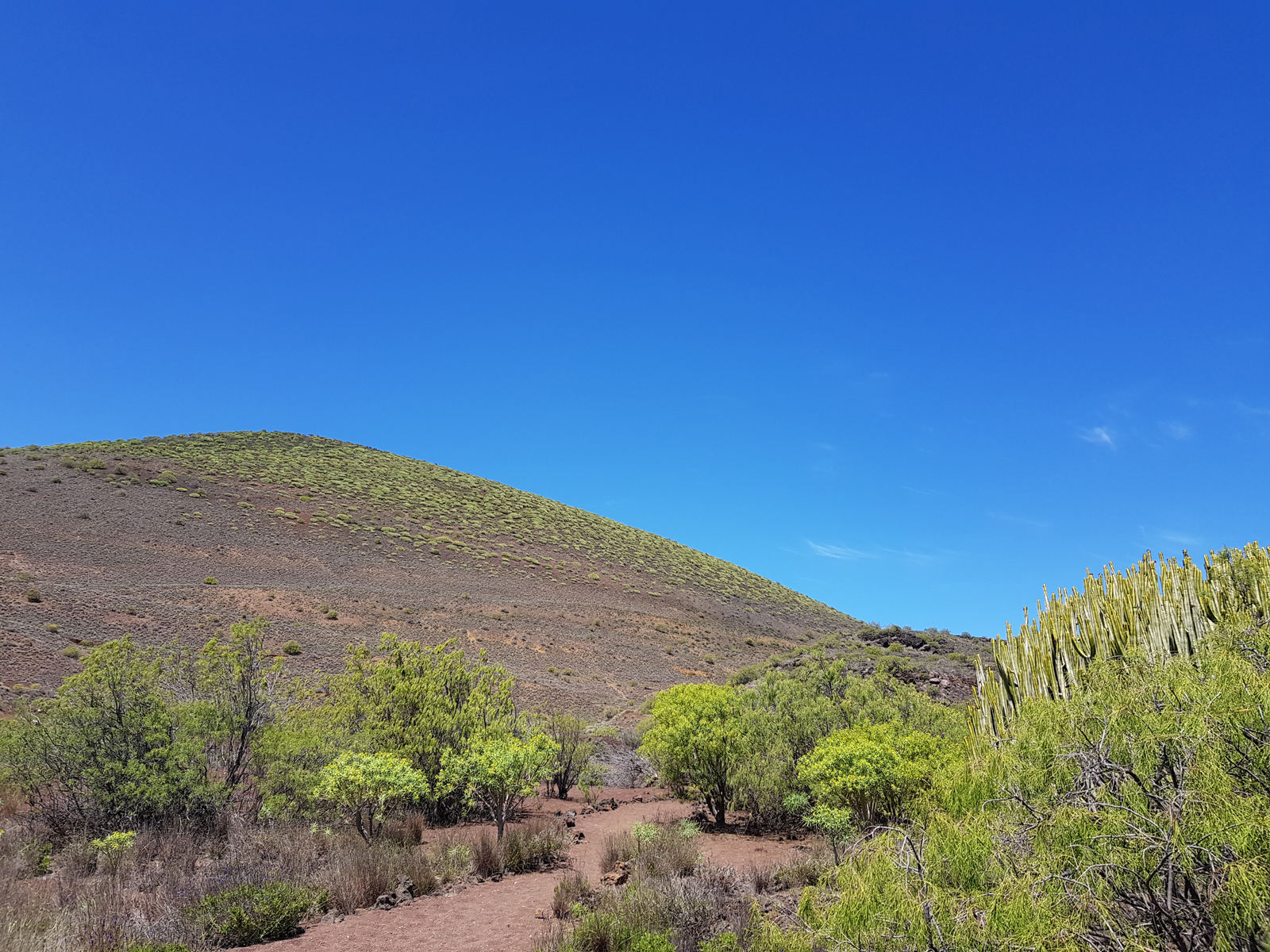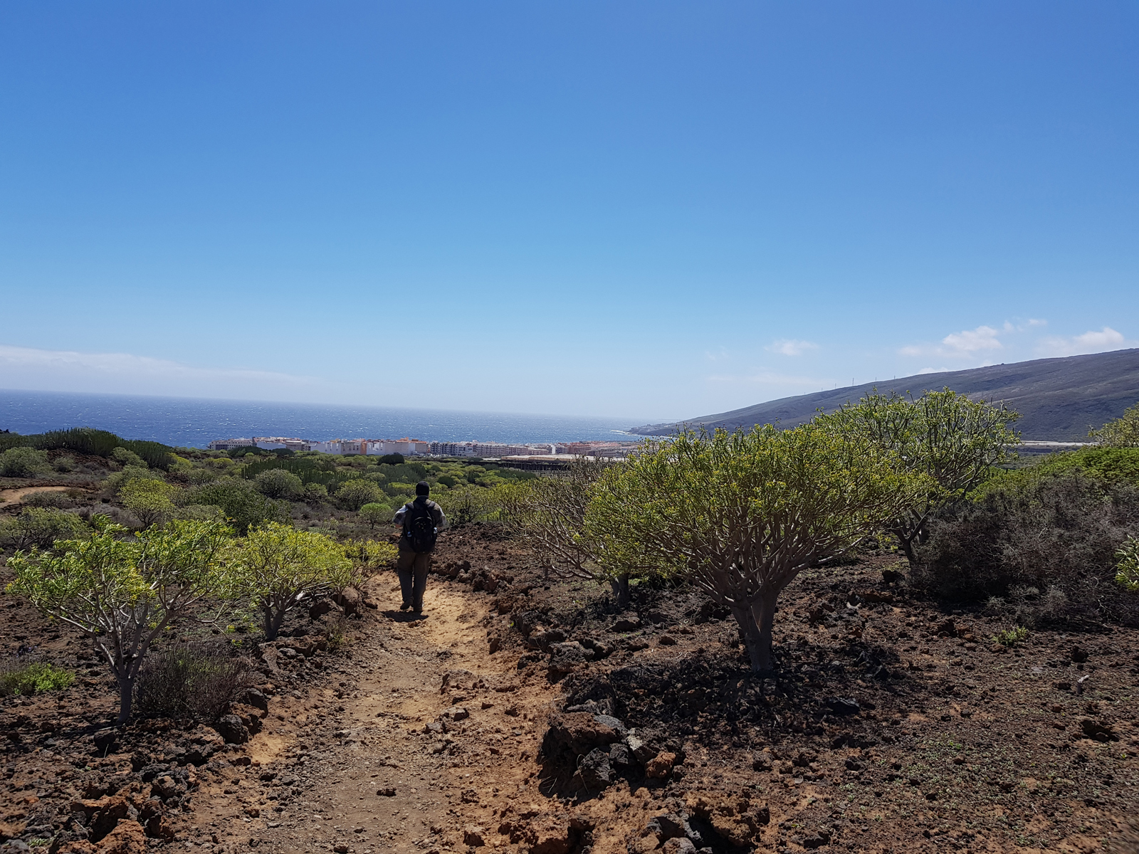 Start unserer Wanderung war am großen Parkplatz im Norden des Ortes Puertito de Güímar. Nach Erreichen des Puertito de Güímar folgt der Weg zunächst dem Lavaküstenverlauf und passiert eine alte Saline. Danach schlängelt sich der Pfad hinauf zum Mirador de Montaña La Mar. Hinter dem Aussichtspunkt geht es weiter bergan Richtung Montaña Grande. Unterhalb des Vulkankegels wird der Mirador Morra del Corcho erreicht. Am Rande des Naturschutzgebiets führt der Weg zurück zum Ausgangspunkt.