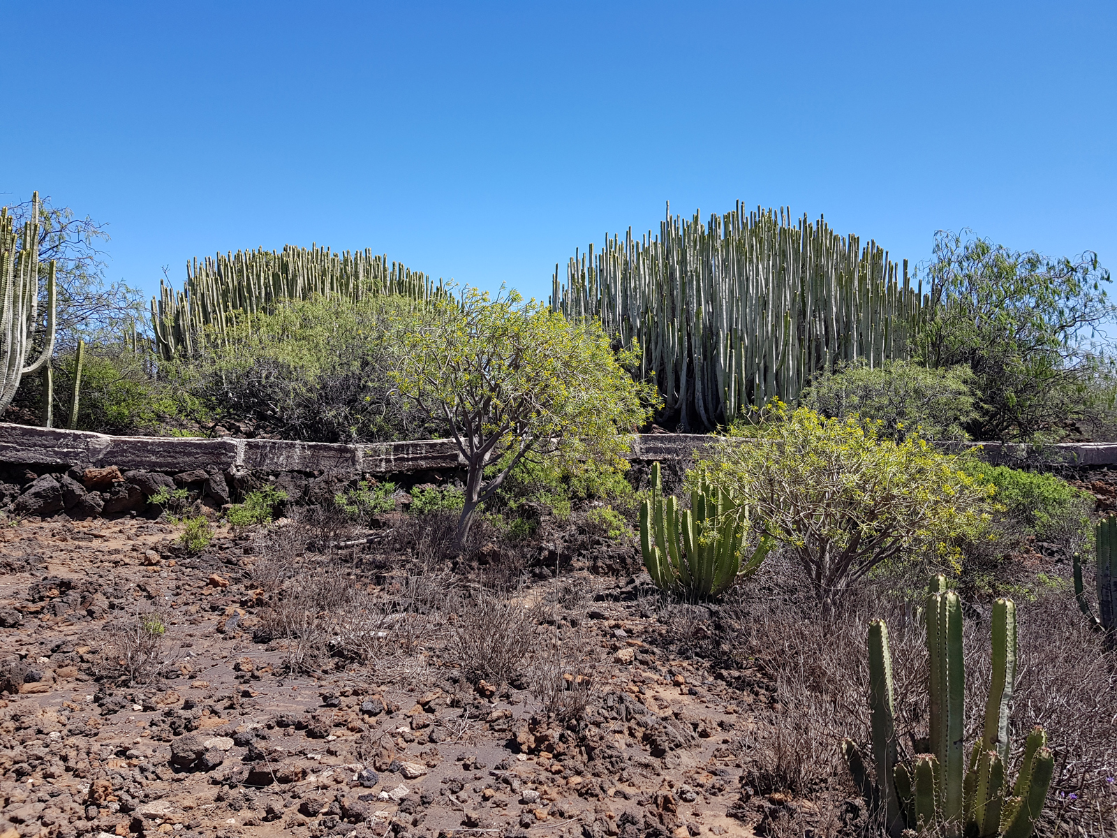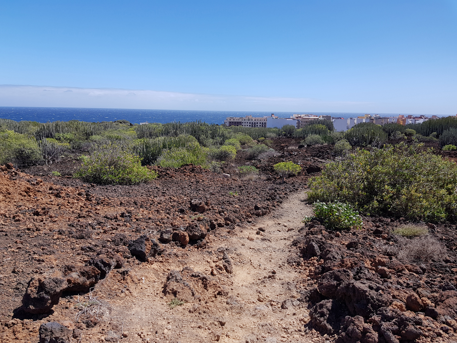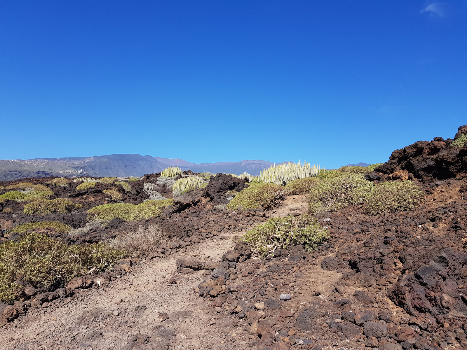 Auf dem vorgestellten Rundweg geht man durch verschiedene Lavaformationen, passiert alte Salinebecken, sieht verschiedenste Wolfsmilchgewächse, Flechten u.a. und erklimmt zwei Aussichtspunkte mit eindrucksvollen Blicken über das Malpaís de Güímar zur Küste bzw. zur Montaña Grande.