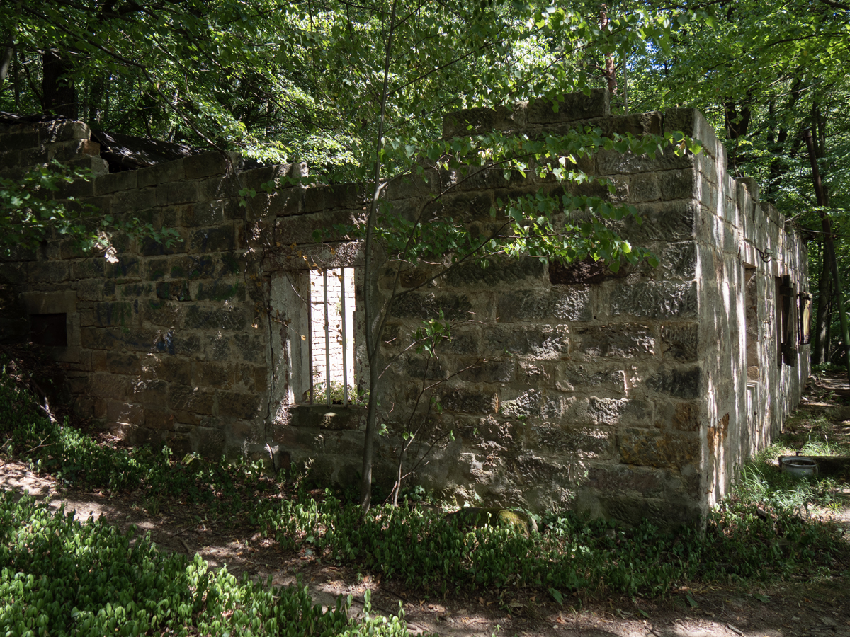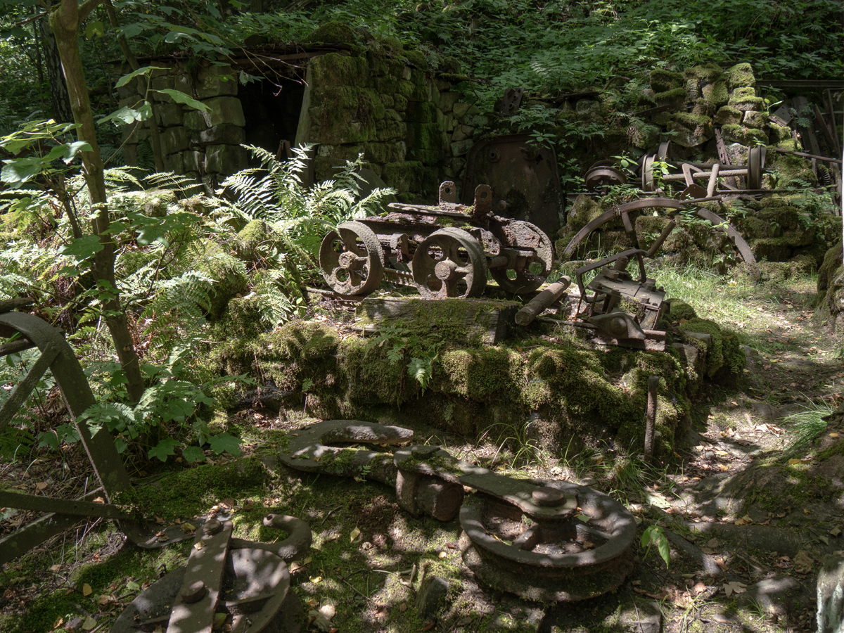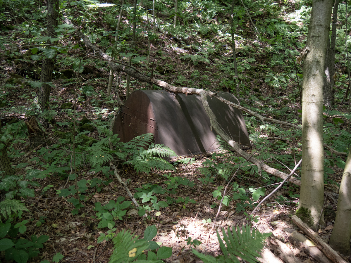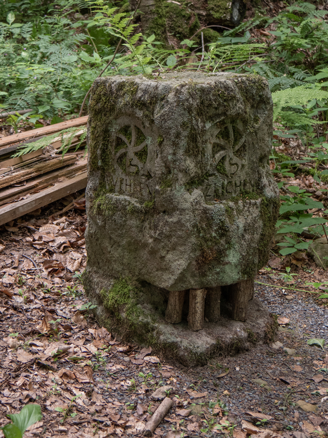 Nach dem Genießen der Aussicht wanderten wir nun auf dem Steinbruchpfad mit seinen Ausstellungsstücken und verschiedene Steinbrüche passierend weiter. An der Ruine des Ateliers Pol Cassal sind wir allerdings vom Steinbruchpfad abgekommen, da wir die Markierung nicht ausreichend beachtet haben. So sind wir weiter oben an der Abbruchkante gelaufen und am oberen Ende der Himmelsleiter herausgekommen. Schade, sollen doch auf dem letzten Wegestück des Steinbruchpfades auch viele Mühlsteine zu sehen sein. Naja, ist auch nicht so schlimm, wir können ja nochmal einen Versuch starten.