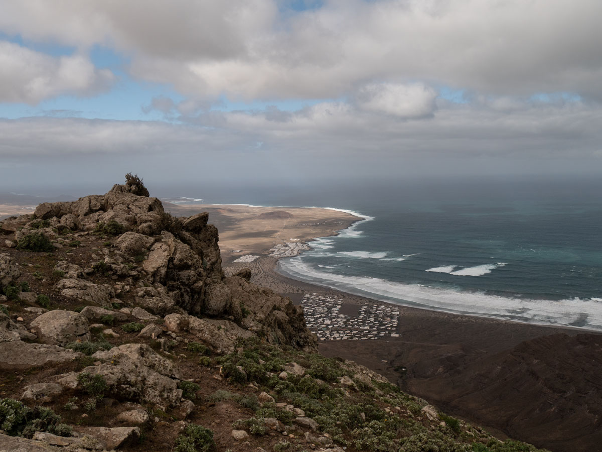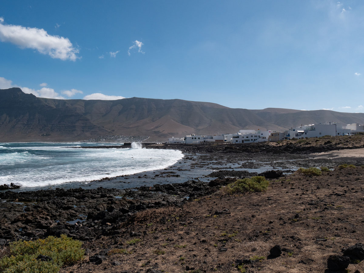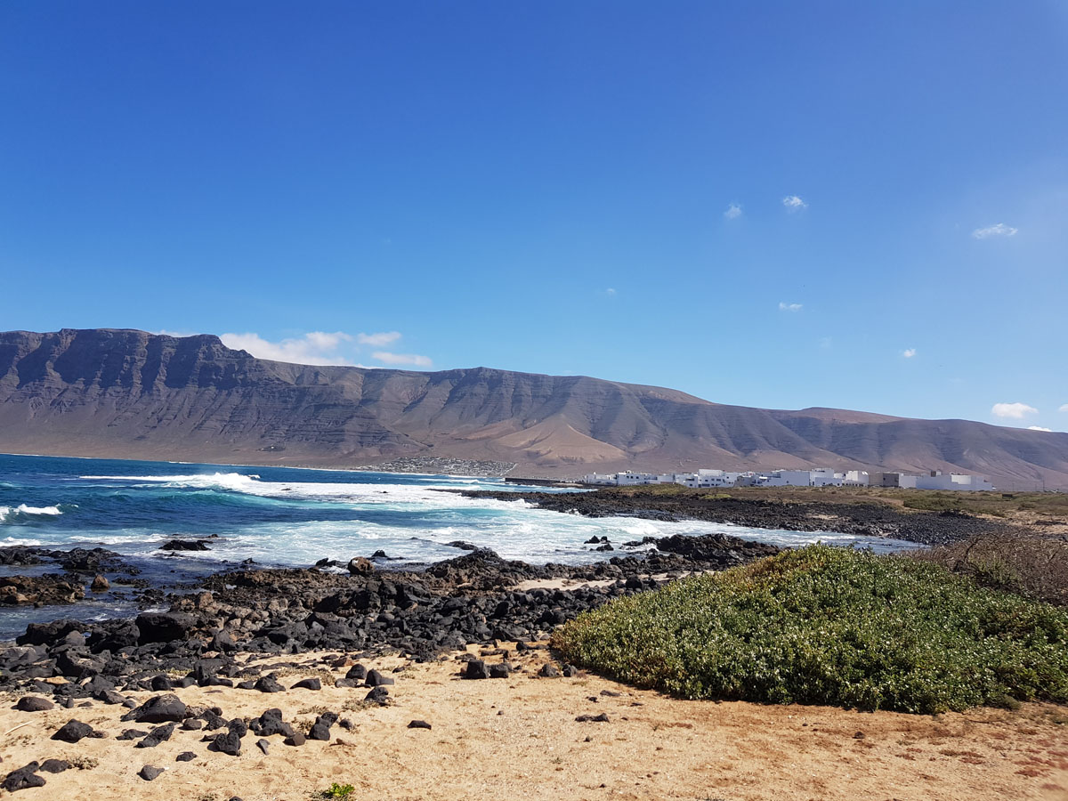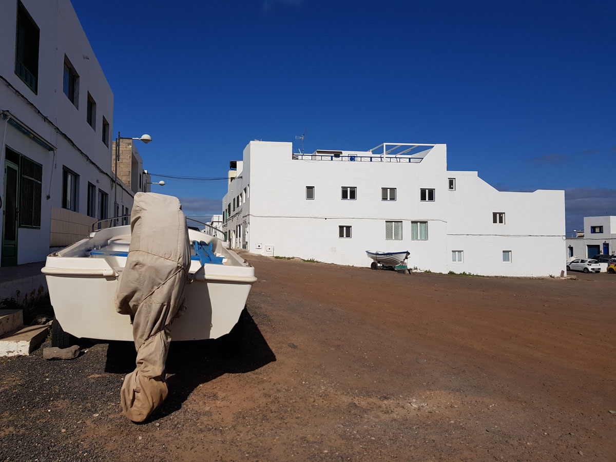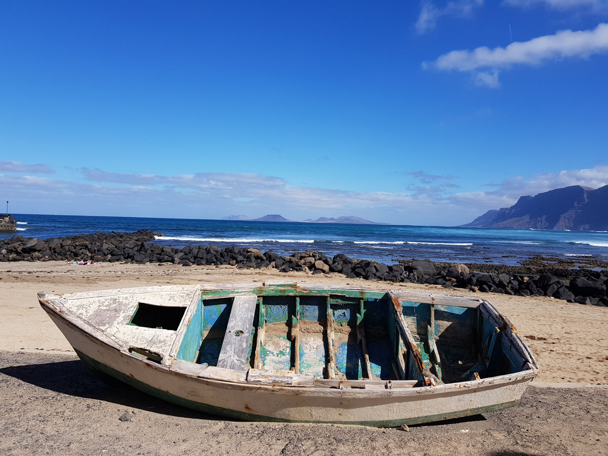 Caleta de Famara ist vorwiegend für Surfer interessant. Wanderer findet man in diesem kleinen Ort nicht so häufig. Wir suchen Caleta sehr gerne auf. Es hat einen besonderen Reiz. Ausgebaute Straßen sind größtenteils nicht vorhanden, die Wege sind mit Sand überzogen bzw. verweht. Neben einigen Autos parken überall Boote. Vom Ort und der Küstenpromenade hat man sehr schöne Blicke zum Risco de Famara und zur Insel La Graciosa. Vom Küstenpfad eröffnen sich ebenfalls  gute Blicke zu den Vulkanen im Hinterland bei Sóo, der Montaña Cavera, der Montaña Chica und der Montaña Juan del Hierro sowie der Caldera Trasera. Die Küstenwege sind nicht überlaufen und im Ort gibt es etliche Fischrestaurants. Also alles für einen gemütlichen Tag geeignet…