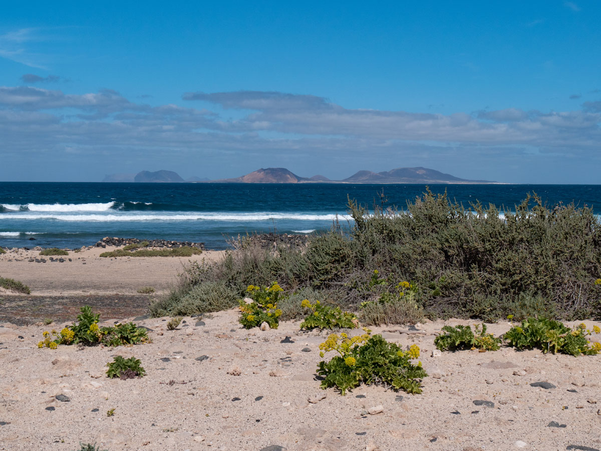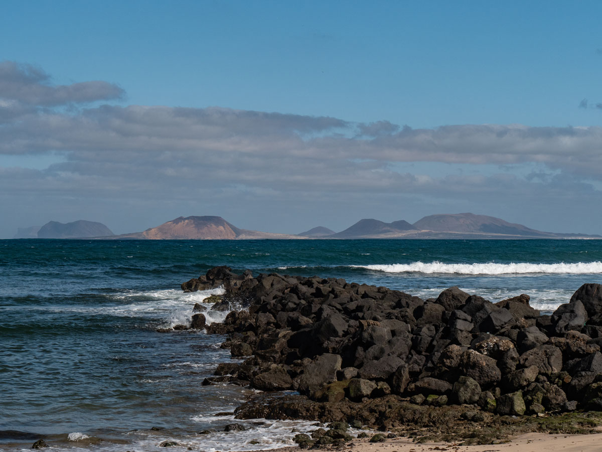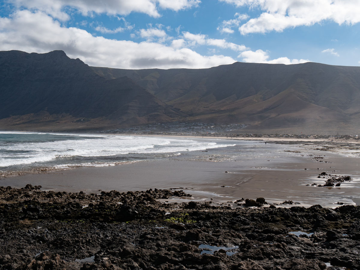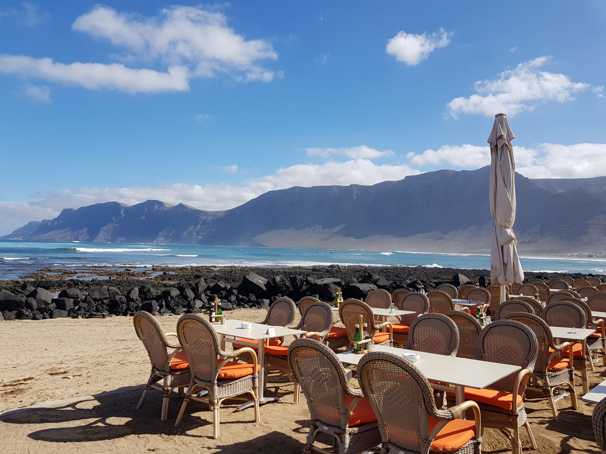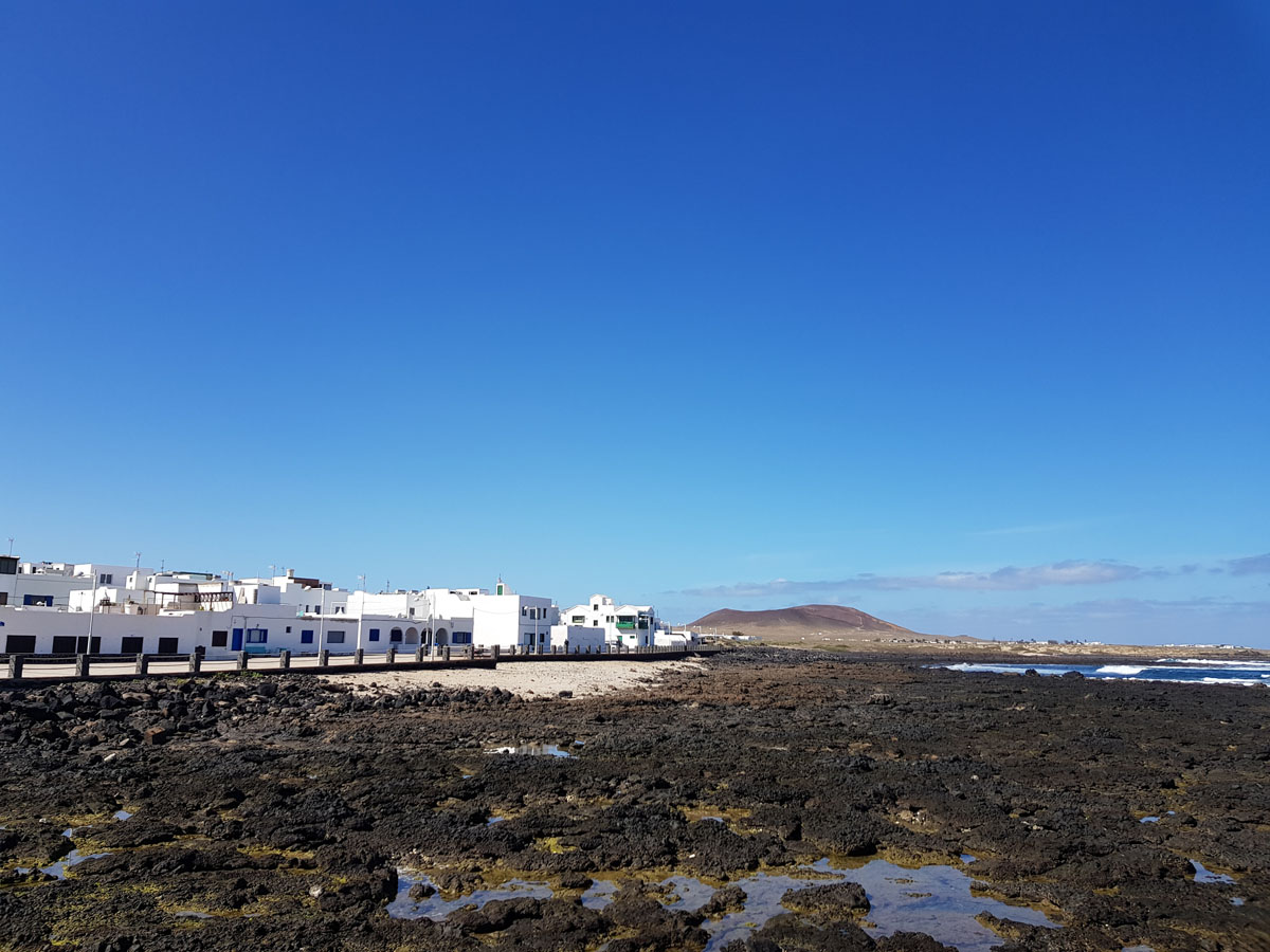 Caleta de Famara ist vorwiegend für Surfer interessant. Wanderer findet man in diesem kleinen Ort nicht so häufig. Wir suchen Caleta sehr gerne auf. Es hat einen besonderen Reiz. Ausgebaute Straßen sind größtenteils nicht vorhanden, die Wege sind mit Sand überzogen bzw. verweht. Neben einigen Autos parken überall Boote. Vom Ort und der Küstenpromenade hat man sehr schöne Blicke zum Risco de Famara und zur Insel La Graciosa. Vom Küstenpfad eröffnen sich ebenfalls  gute Blicke zu den Vulkanen im Hinterland bei Sóo, der Montaña Cavera, der Montaña Chica und der Montaña Juan del Hierro sowie der Caldera Trasera. Die Küstenwege sind nicht überlaufen und im Ort gibt es etliche Fischrestaurants. Also alles für einen gemütlichen Tag geeignet…