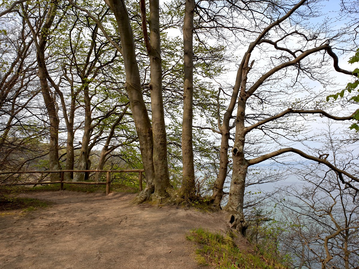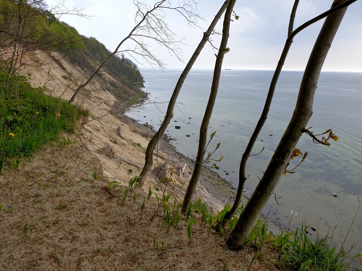 Start zu der ca. 6 km langen Rundwanderung war für uns am Bahnhof im Ostseebad Göhren. Nach einem Besuch der Seebrücke ging es entlang der Bernsteinpromenade Richtung Osten. Der Aufstieg zum Hochuferweg wurde schnell erreicht und gut ausgeschildert gelangten wir nach oben. Der Weg ist nicht zu verfehlen, man folgt einfach dem Pfad in einigem Auf und Ab an der Abbruchkante, zunächst oberhalb des Nordstrandes und nach Erreichen des östlichen Punktes oberhalb der Steinmole. Einige Plätze laden zur Aussicht ein.