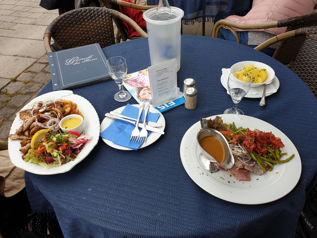 Auch dieses Mal beendeten wir unseren Ausflug in Sassnitz in einer Fischgaststätte.  Wir möchten das Gastmahl des Meeres an der Strandpromenade uneingeschränkt empfehlen. Hier gibt es sehr leckeren Fisch, regional zubereitet und in ausreichenden Portionen.