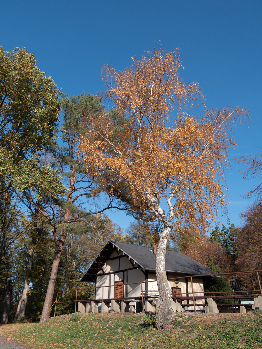 Start war für uns am Waldbad im Ortsteil Oberau. Der Wanderweg folgt im Wesentlichen der Markierung Roter Punkt. Vom Parkplatz gelangt man zunächst auf dem Sächsischen Weinwanderweg zum Gellertberg und durch den Pressgrund zum Rand des Friedewaldes.