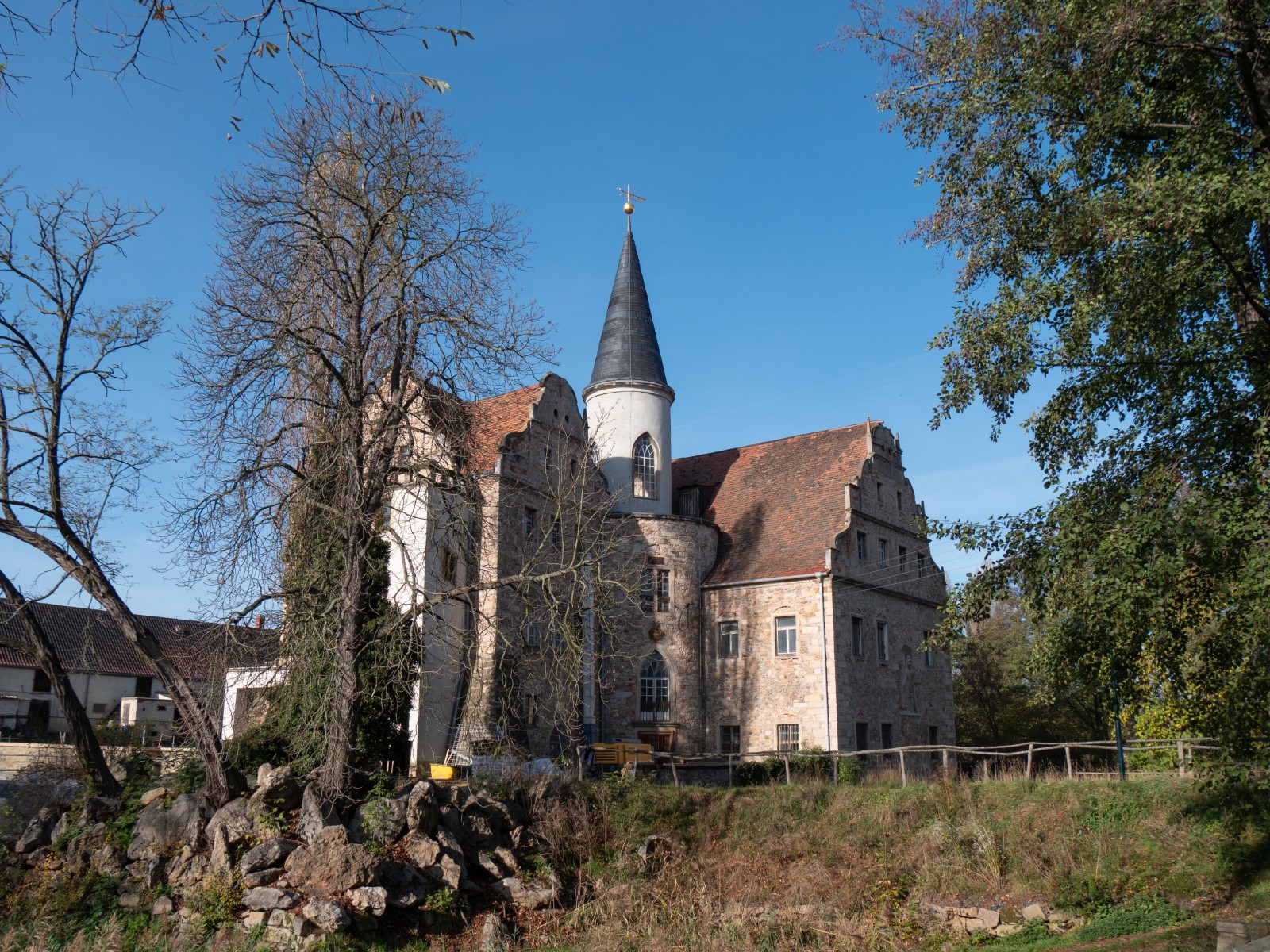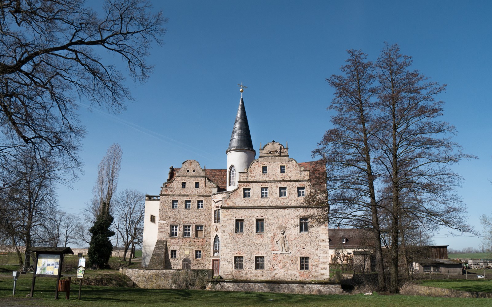 Nun geht es ausgeschildert hinab zum Bahnhof Niederau. Nach Überqueren der Gleisanlagen hält man sich rechts und folgt eine kurze Strecke der Eisenbahnstrecke nach Leipzig. Die Mönchsallee bringt uns hinüber zum Wasserschloss Oberau.