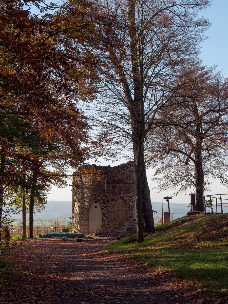 Die Wanderung führt zur Freilichtbühne Gellertberg mit dem Gellerthäuschen und einer Turmruine. Vom Gellertberg hat man gute Aussichten über Weinbauanlagen und die Nassau Richtung Meißen.