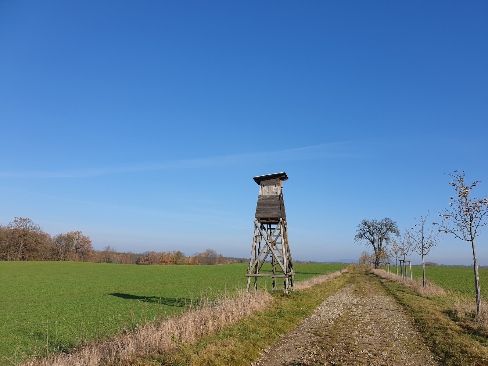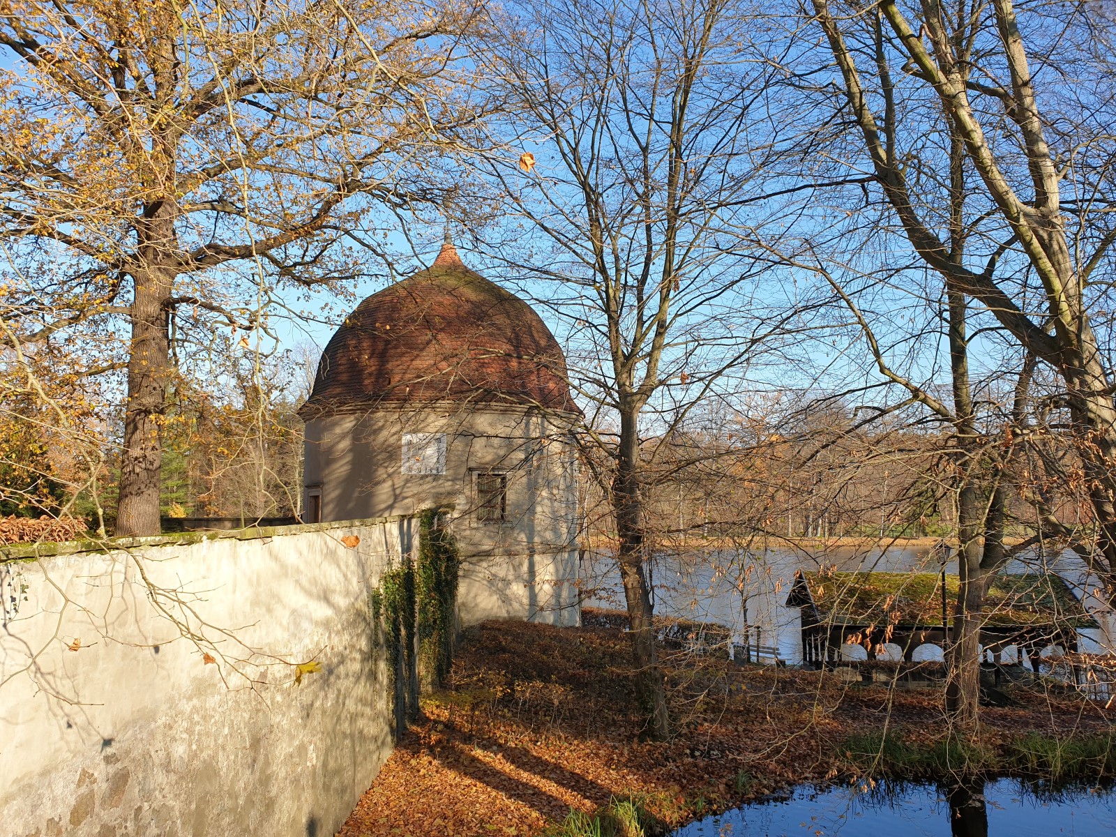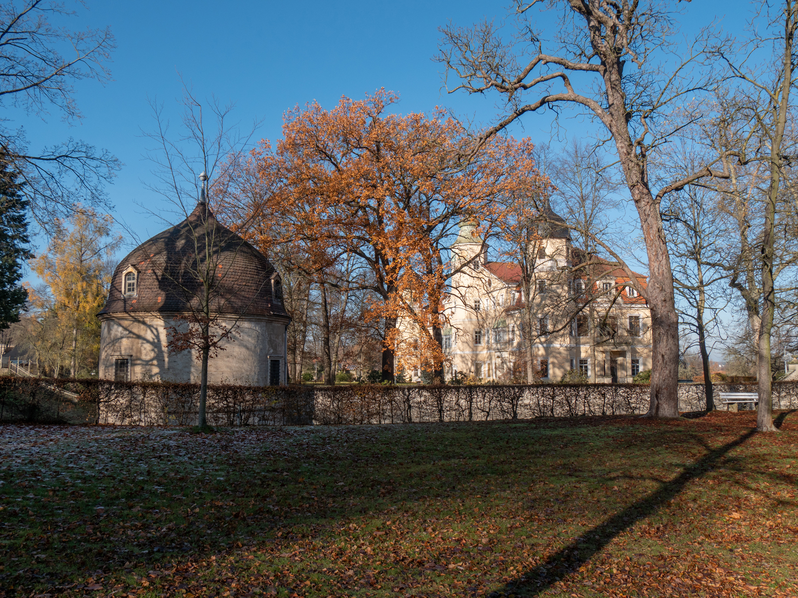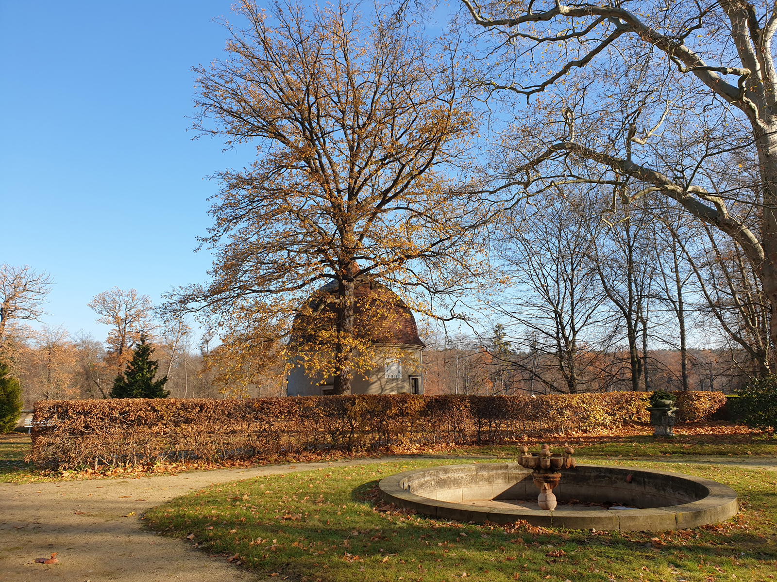 Start für diese 6 km lange Tour war für uns am Haltepunkt in Hermsdorf. Ausgeschildert ging es zunächst zum Schloss und ein Stück durch den Schlosspark. Der Wegmarkierung Roter Strich folgend verlässt man den Schlosspark am südlichen Tor Richtung Langebrück.