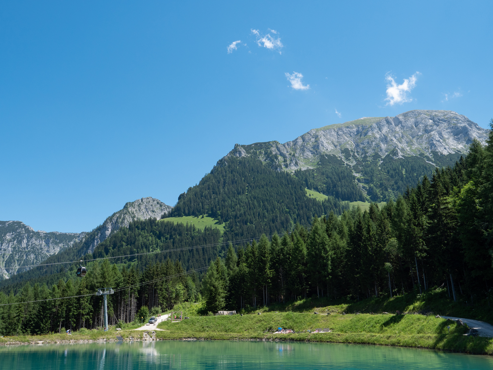 An der Mittelstation am Restaurant Halbzeit kann man ebenfalls seinen Blick über die Berchtesgaden umgebenden Berge schweifen lassen und die Gondeln der Jennerbahn bei ihrer Fahrt bis hoch zum Jenner beobachten.