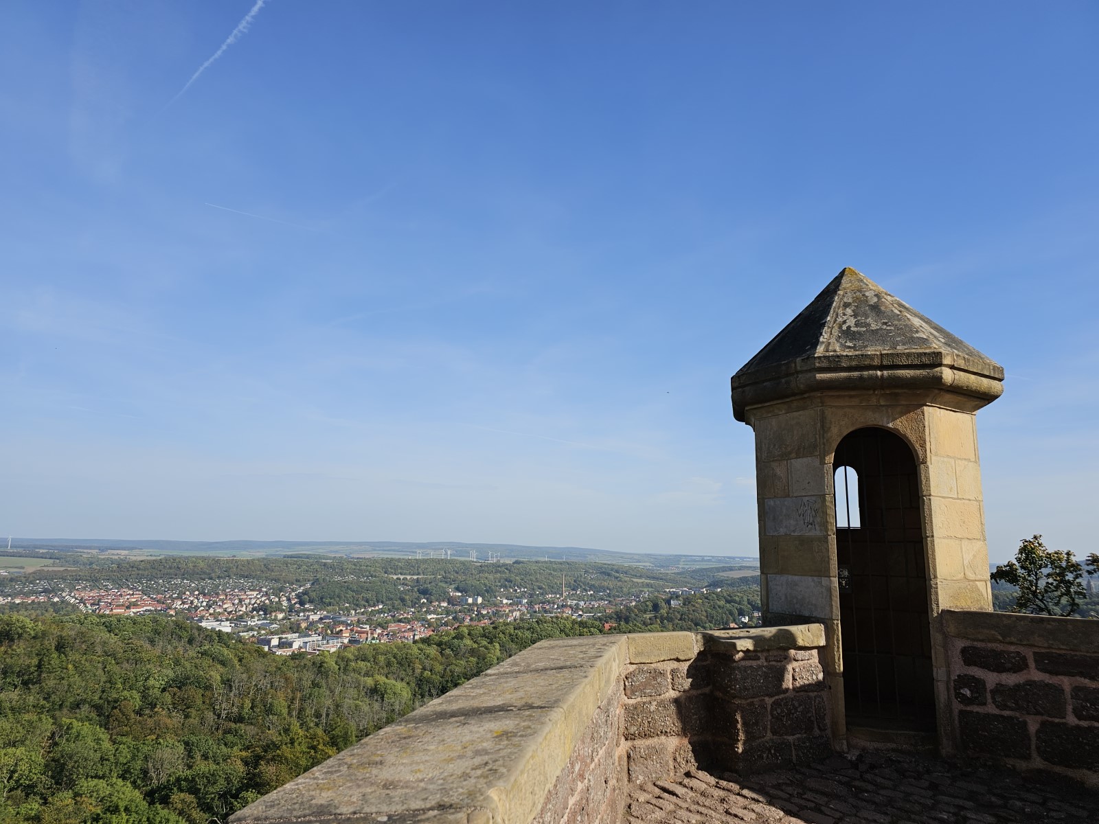 Vom Auf- und Abstiegsweg zur Wartburg und natürlich von verschiedenen Aussichtspunkten auf der Burg hat man wunderschöne Blicke über Eisenach, dessen Ortsteile und über das Vorland des Thüringer Waldes Richtung Hörselberge und Hainich. Öfters zeigt sich das Burschenschaftsdenkmal und als markanter Punkt das Haus Hainstein.