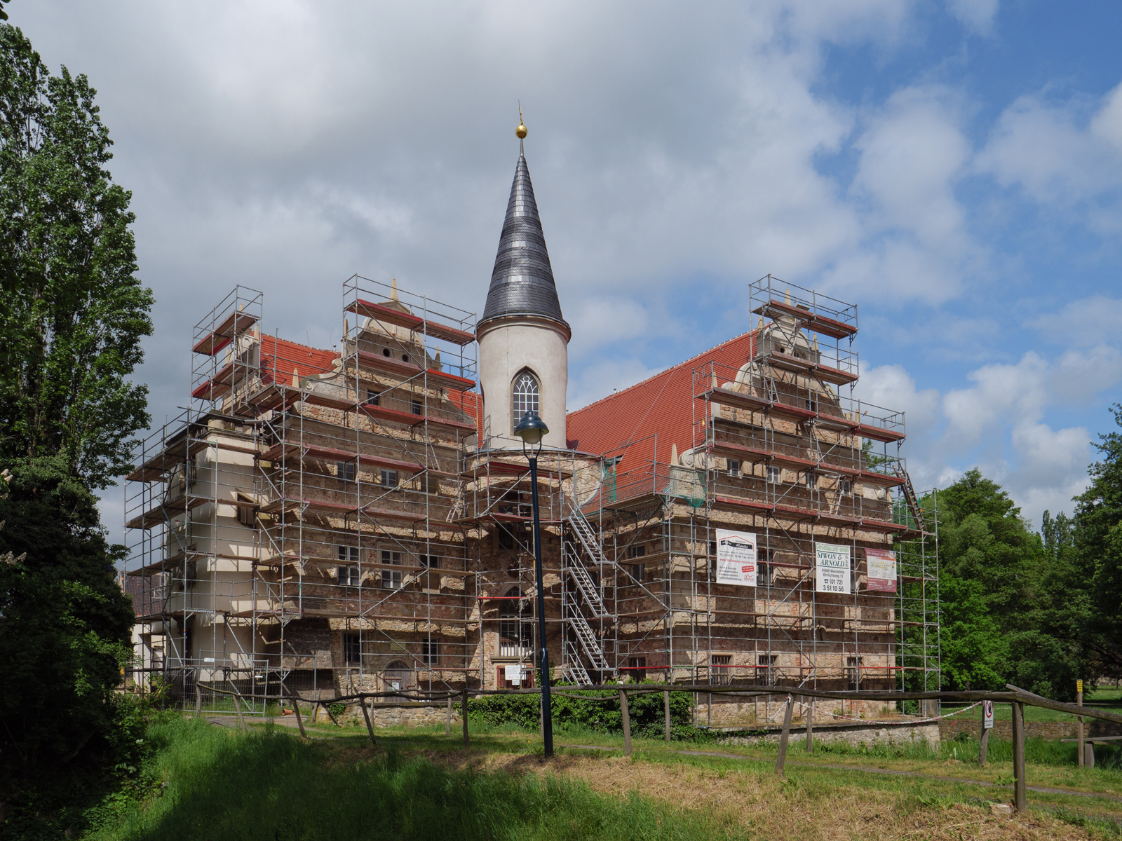 Bedingt durch die verschiedenen Baumaßnahmen befand sich seit 25 Jahren kein Wasser im Schlossgraben. Ende Januar dieses Jahres wurde das Wasserschloss Oberau vom Gerüst befreit und die Fassade erstrahlt wieder glanzvoll. Mittlerweile hat das Wasser den Schlossgraben schon ordentlich gefüllt.