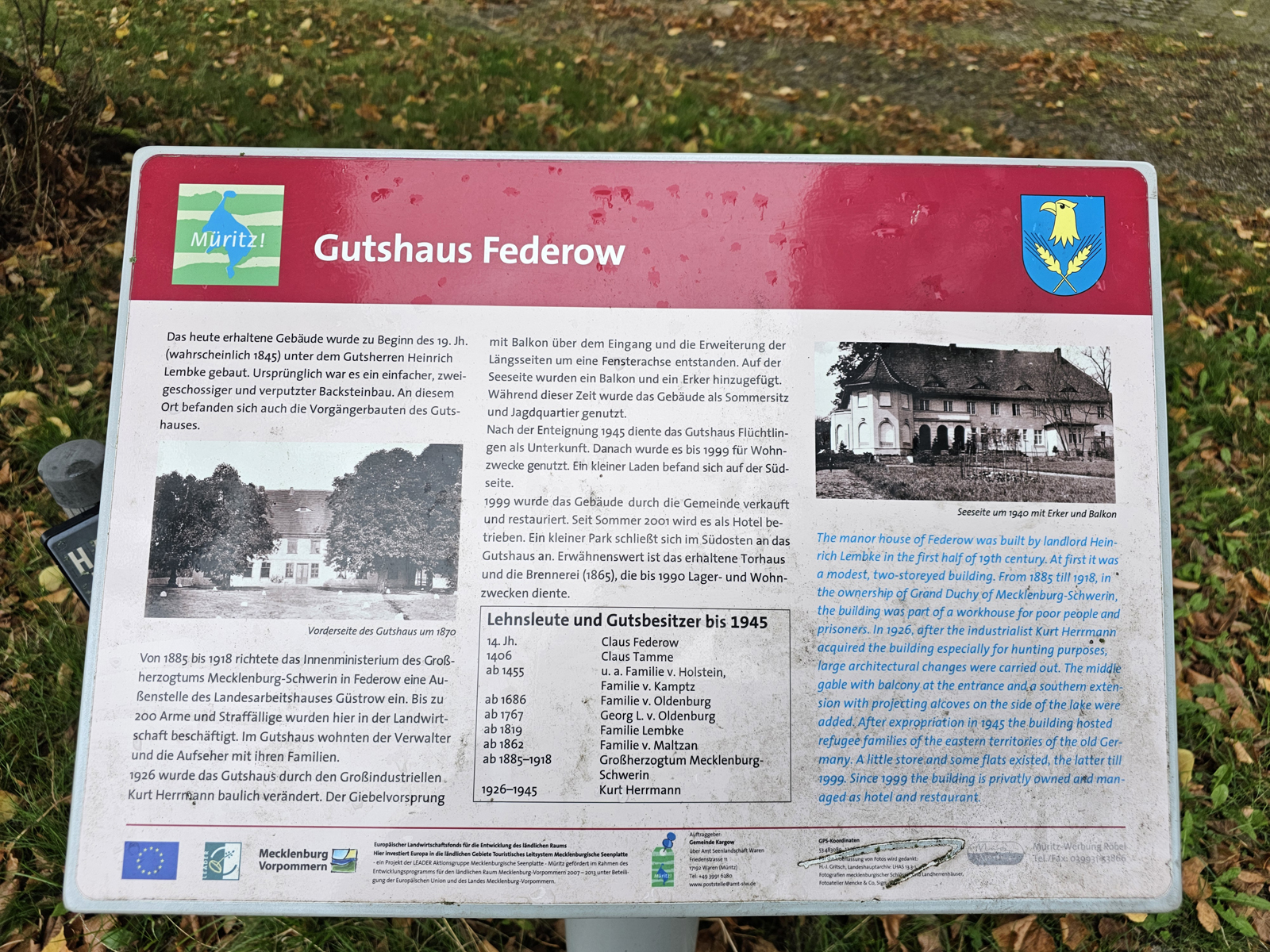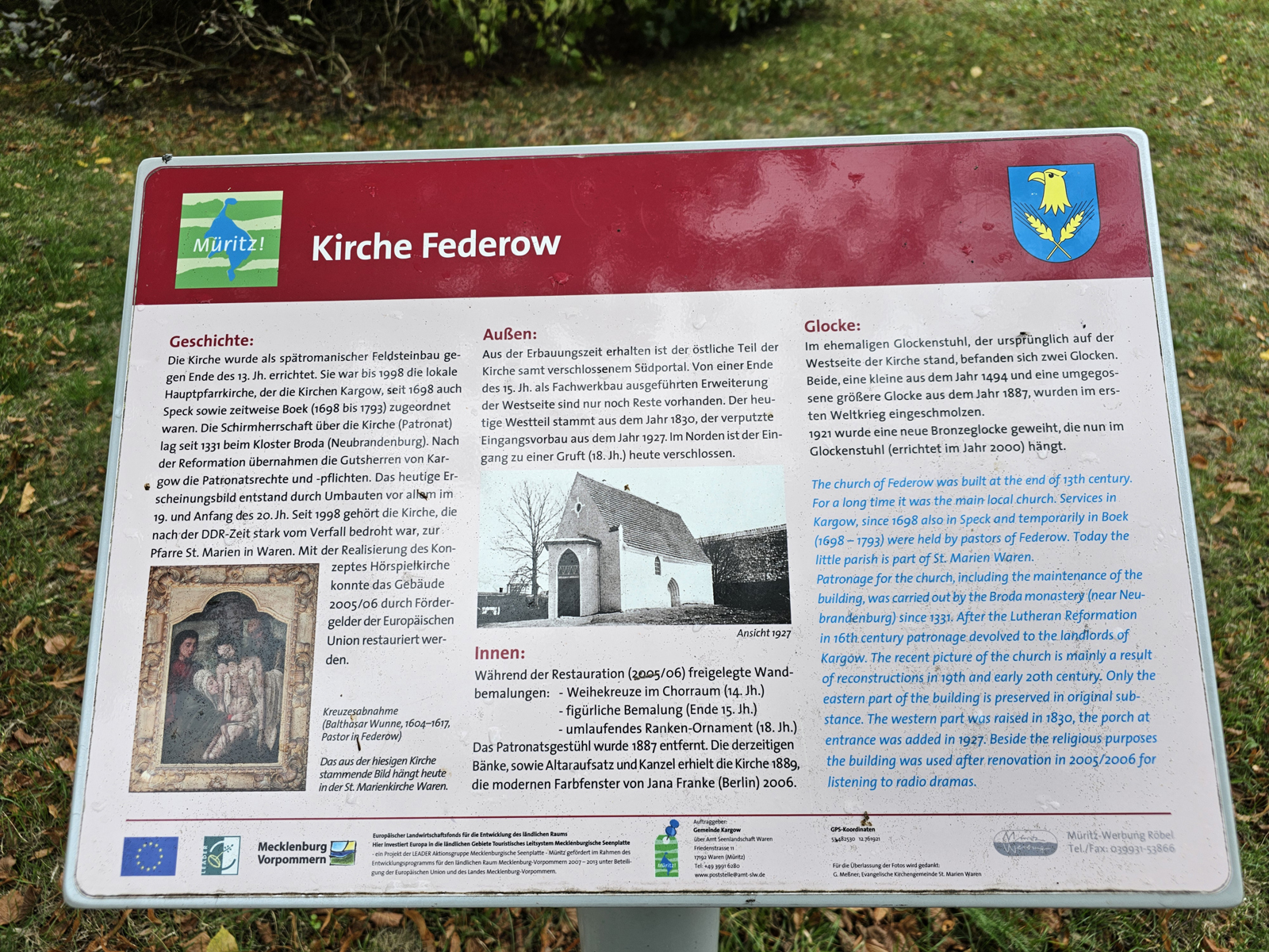 Auch der kleine Ort Federow selbst hat einiges Sehenswerte zu bieten, so das Gutshaus Federow am Hofsee und die Hörspielkirche.