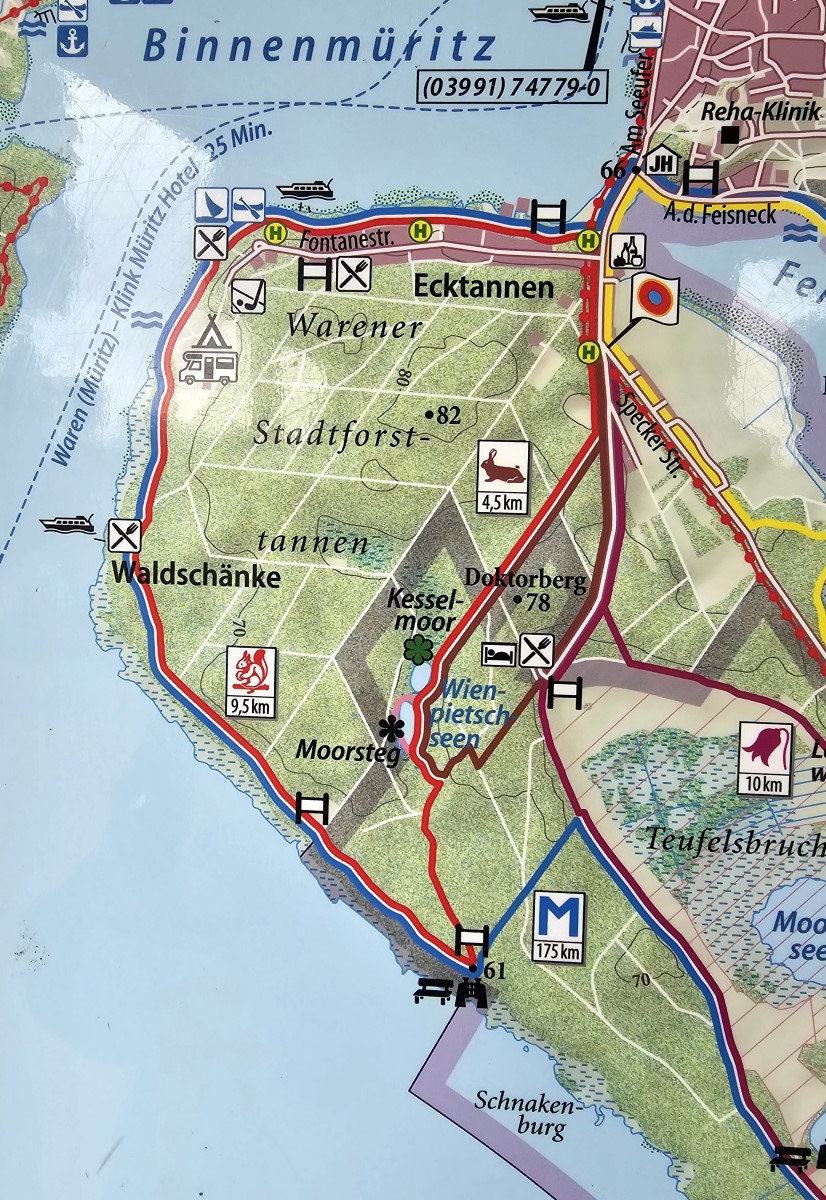 Die Wienpietschseen liegen südlich von Waren (Müritz) am westlichen Rand des Müritz-Nationalparks in einem Kesselmoor. Sie sind auf Moorstegen begehbar. Als Wanderweg dorthin wird der Weg mit der Kennzeichnung „Brauner Hase“ empfohlen. Wir machten uns auf den Weg.