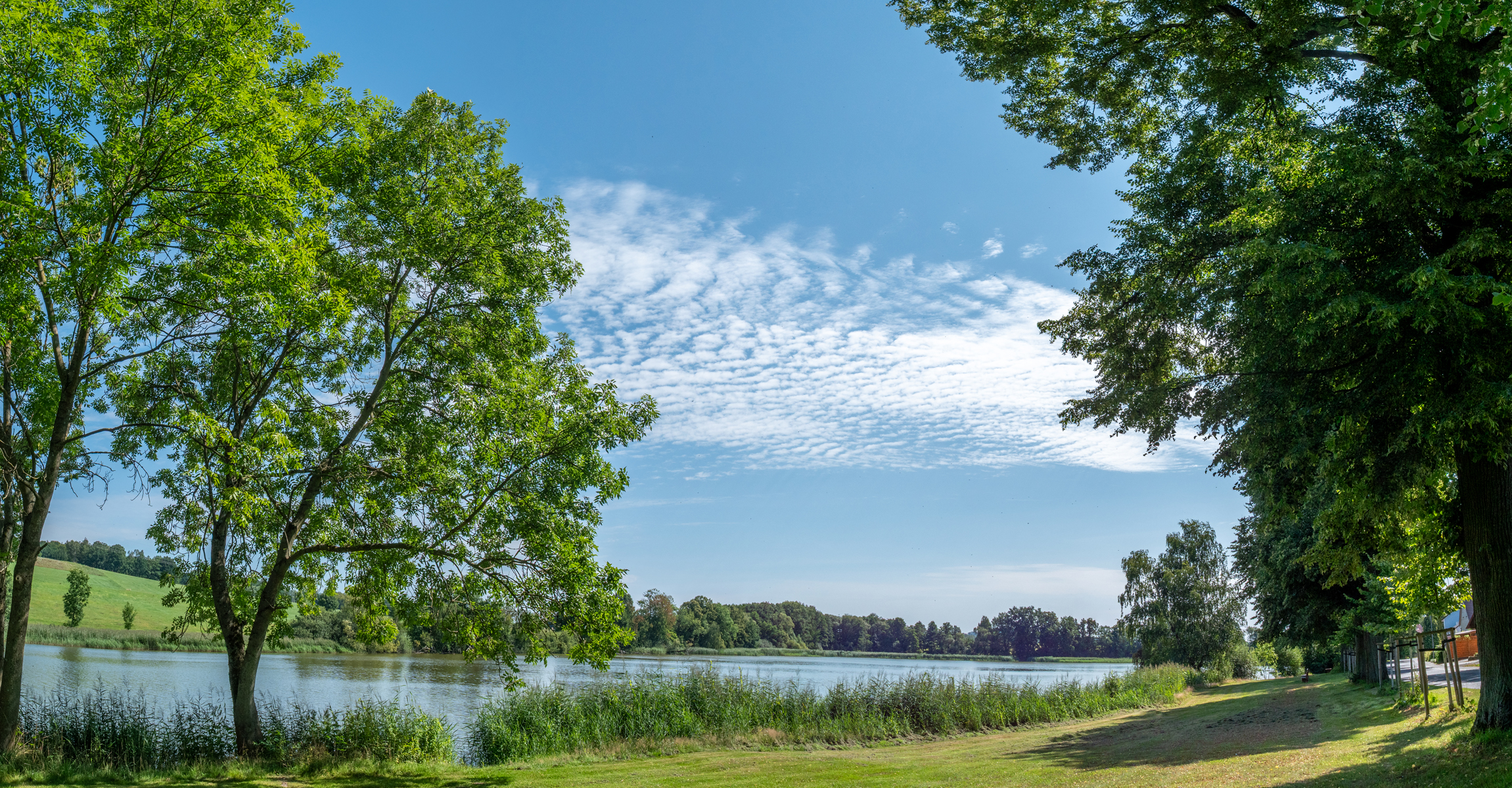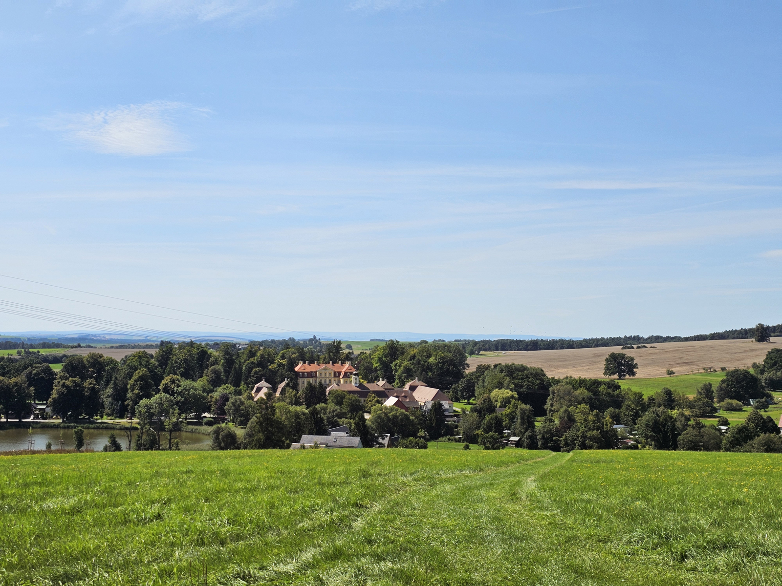 Wir haben uns für die Schlossblickwanderung entschieden. Der Rundweg führt über angenehme Wald- und Wiesenwege vorbei an drei Teichen zu Punkten mit Ausblicken zum Barockschloss und in die Oberlausitz.