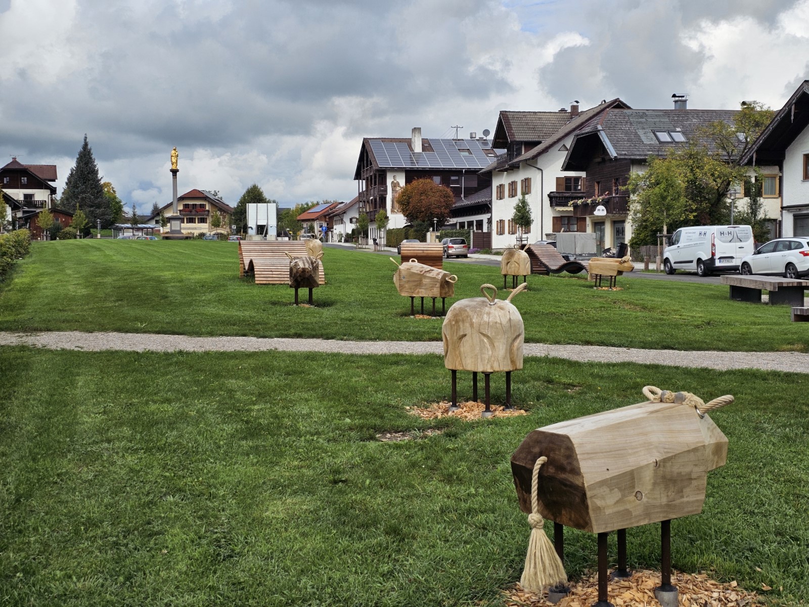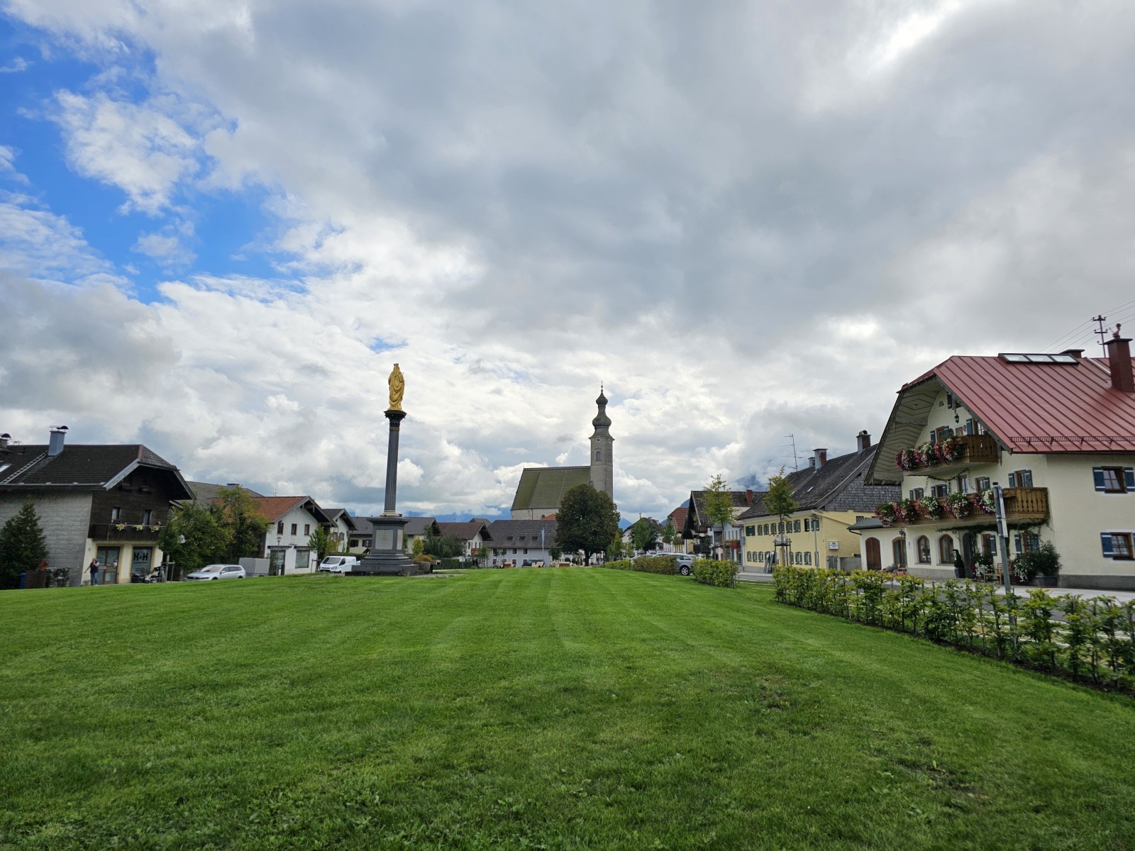 Über die Holzhauser Straße wird der Dorfplatz erreicht. Hier kann man sich umschauen und zur Kirche hinaufsteigen und den Blick über Anger genießen. Der Dorfplatz bietet Ruhebänke und Spielgelegenheiten. Wir empfehlen auch den Besuch des Restaurants Goberg.