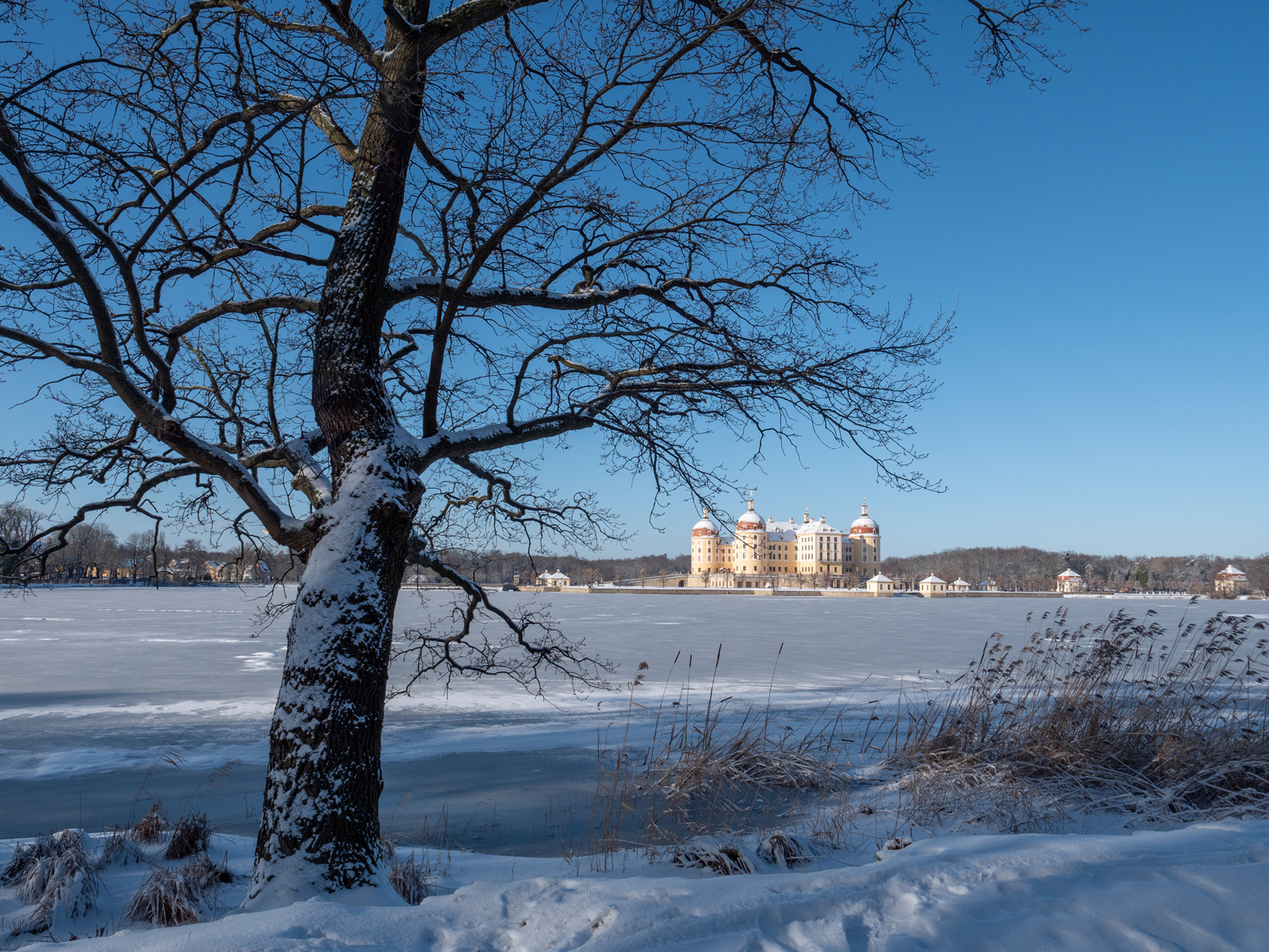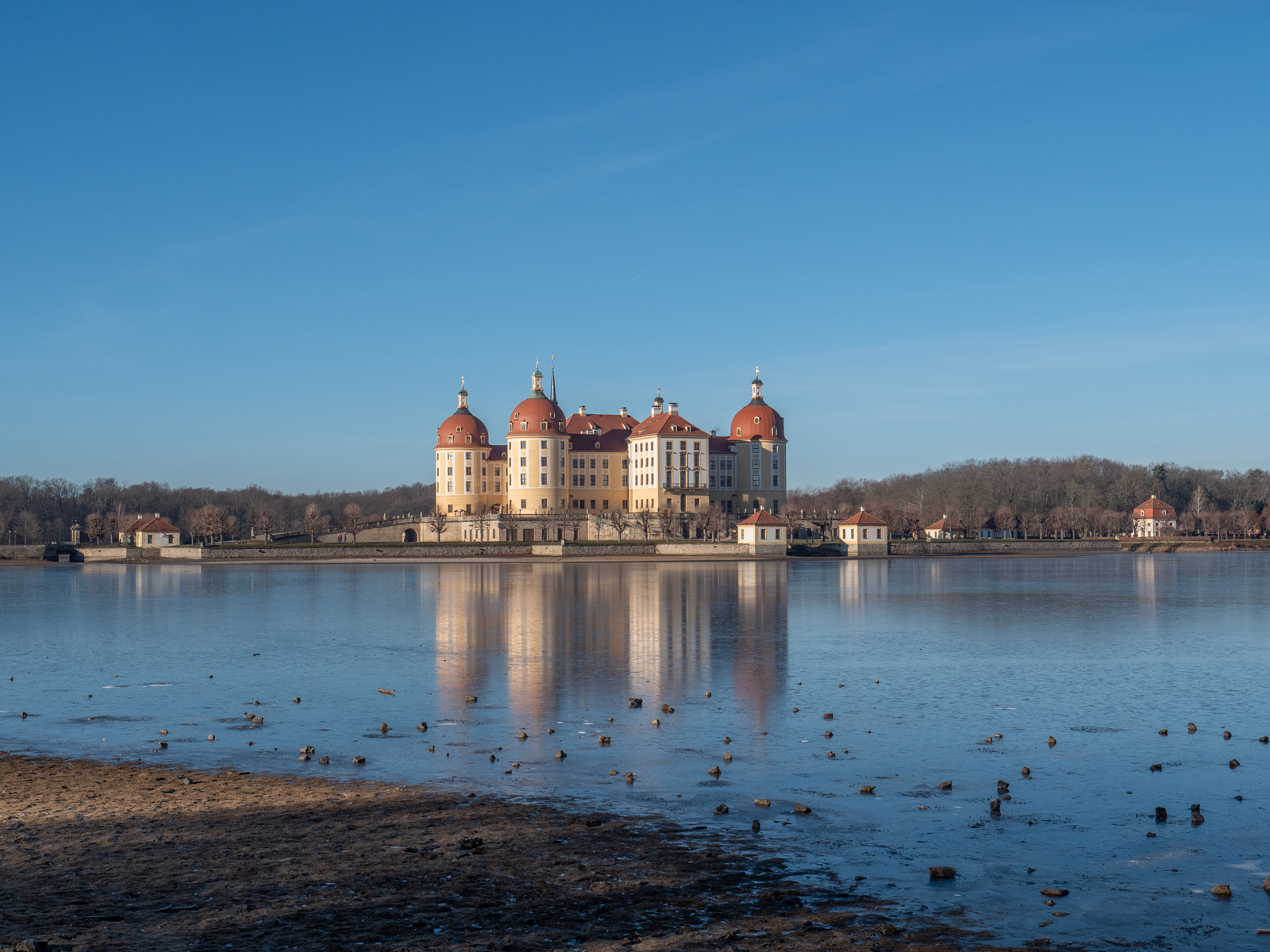 Entlang des Schlossteichs zum Barockschloss Moritzburg