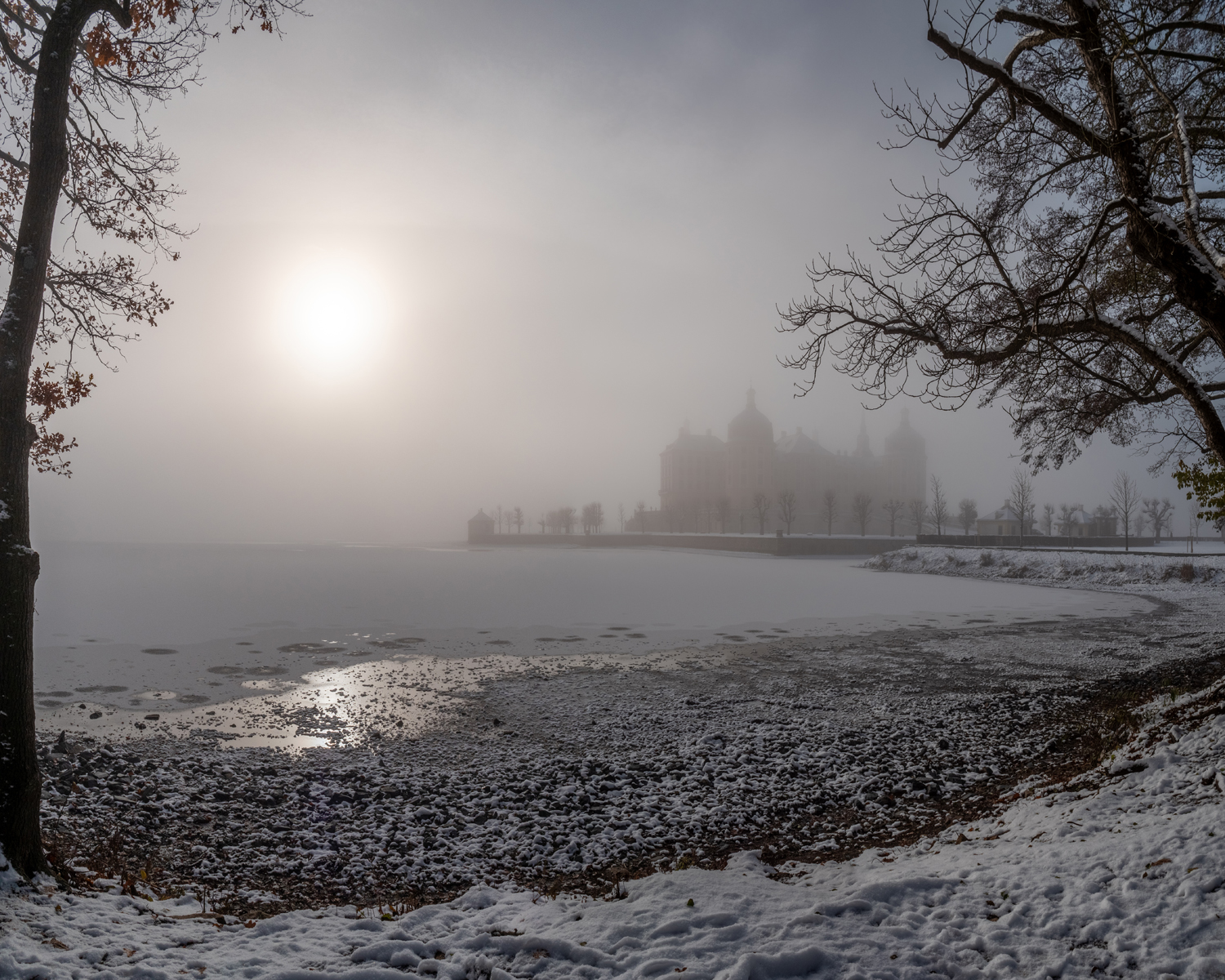 Am Schlossteich angekommen, gingen wir nach rechts zum Ufer des Teichs. Wir umrundeten anschließend den östlichen Teil des Schlossteichs, zu jeder Jahreszeit mit schönen Blicken zum Schlossensemble.